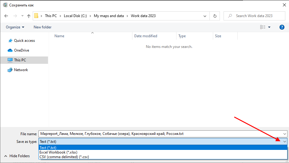 Чтобы сохранить отчет в виде документа в формате .txt, .xlsx, .csv, нажмите кнопку Сохранить как, из списка выберите необходимый формат и укажите расположение файла.